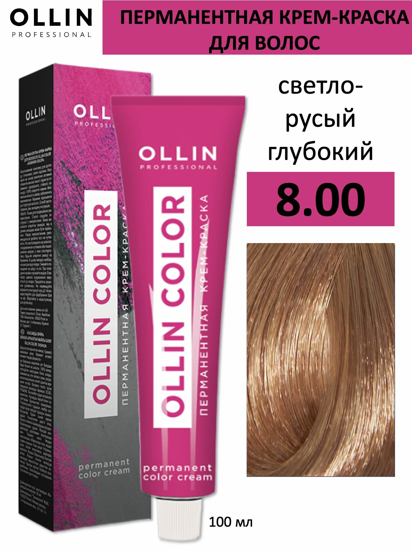 Ollin Color - Оллин Колор Стойкая крем-краска для волос, 100 мл - OLLIN COLOR 8/0 светло-русый