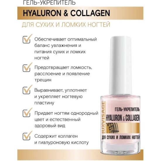 LUXVISAGE Гель-укрепитель HYALURON & COLLAGEN для сухих и ломких ногтей 9 г информация: