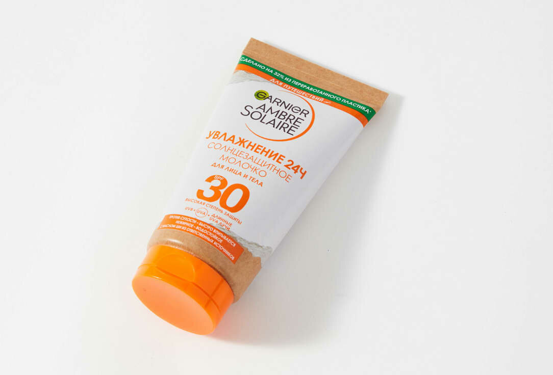 10 цен на Garnier Солнцезащитное молочко для лица и тела Ambre Solaire, SPF 30+, водостойкое, нежирное, с маслом ши, 50 мл.
