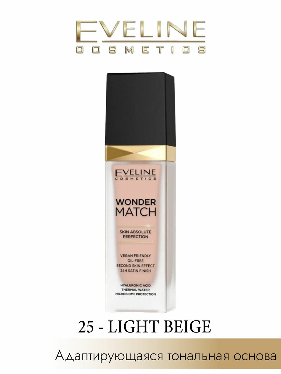 Адаптирующаяся тональная основа EVELINE WONDER MATCH тон 25 Light Beige, 30мл