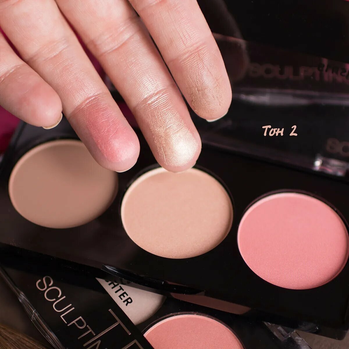 Набор для скульптурирования лица SCULPTING TRIО скульптор, хайлайтер, румяна т. 2 Belor Design