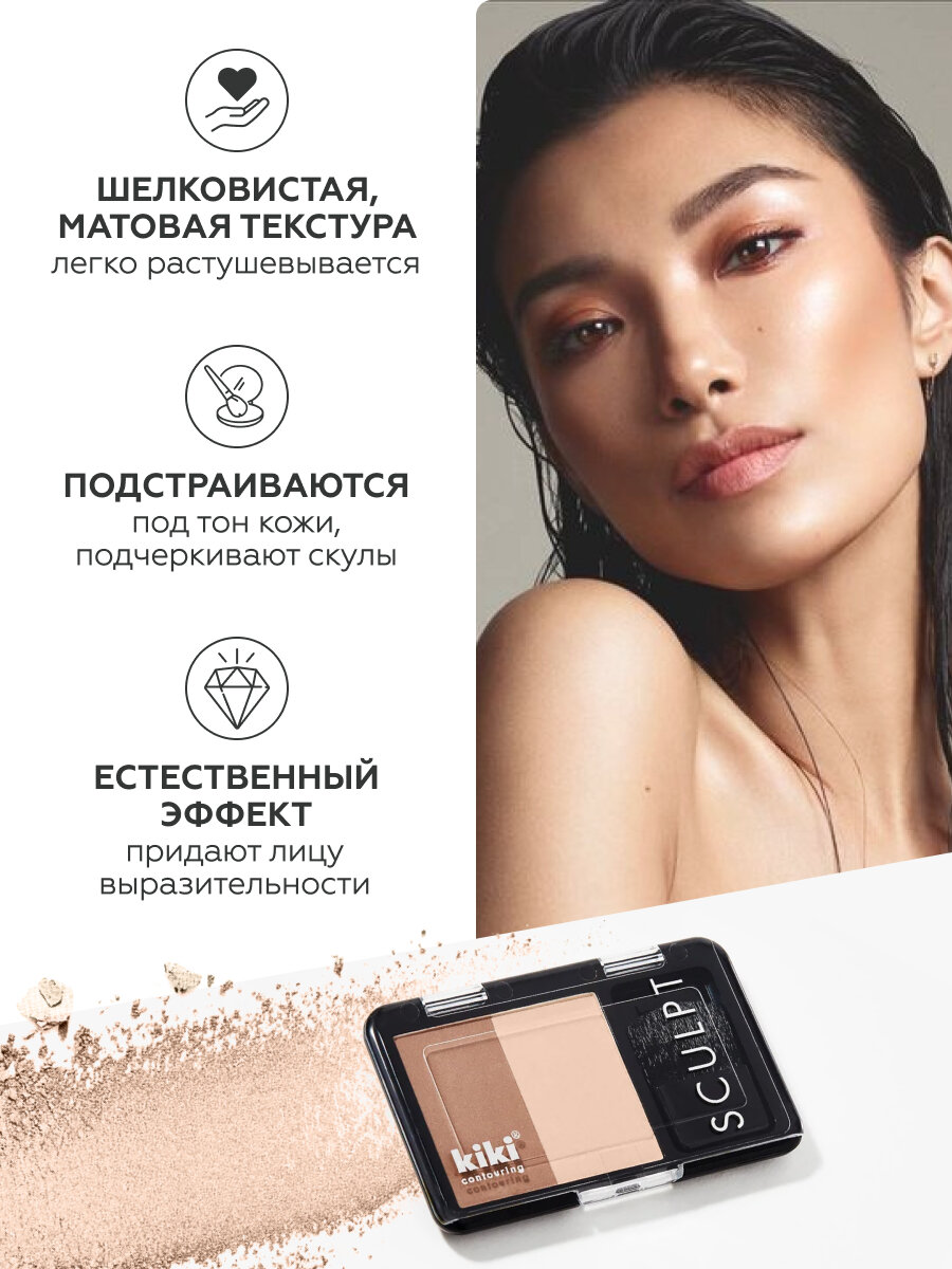 10 цен на Контурные румяна Kiki CONTOUR 702, скульптор для лица, палетка румян, светло-коричневый и светло-персиковый