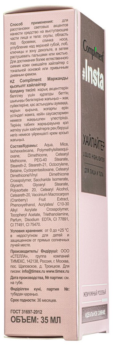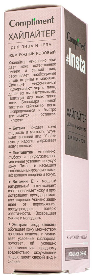 Compliment, Хайлайтер для лица и тела, жемчужный розовый, 35мл информация: