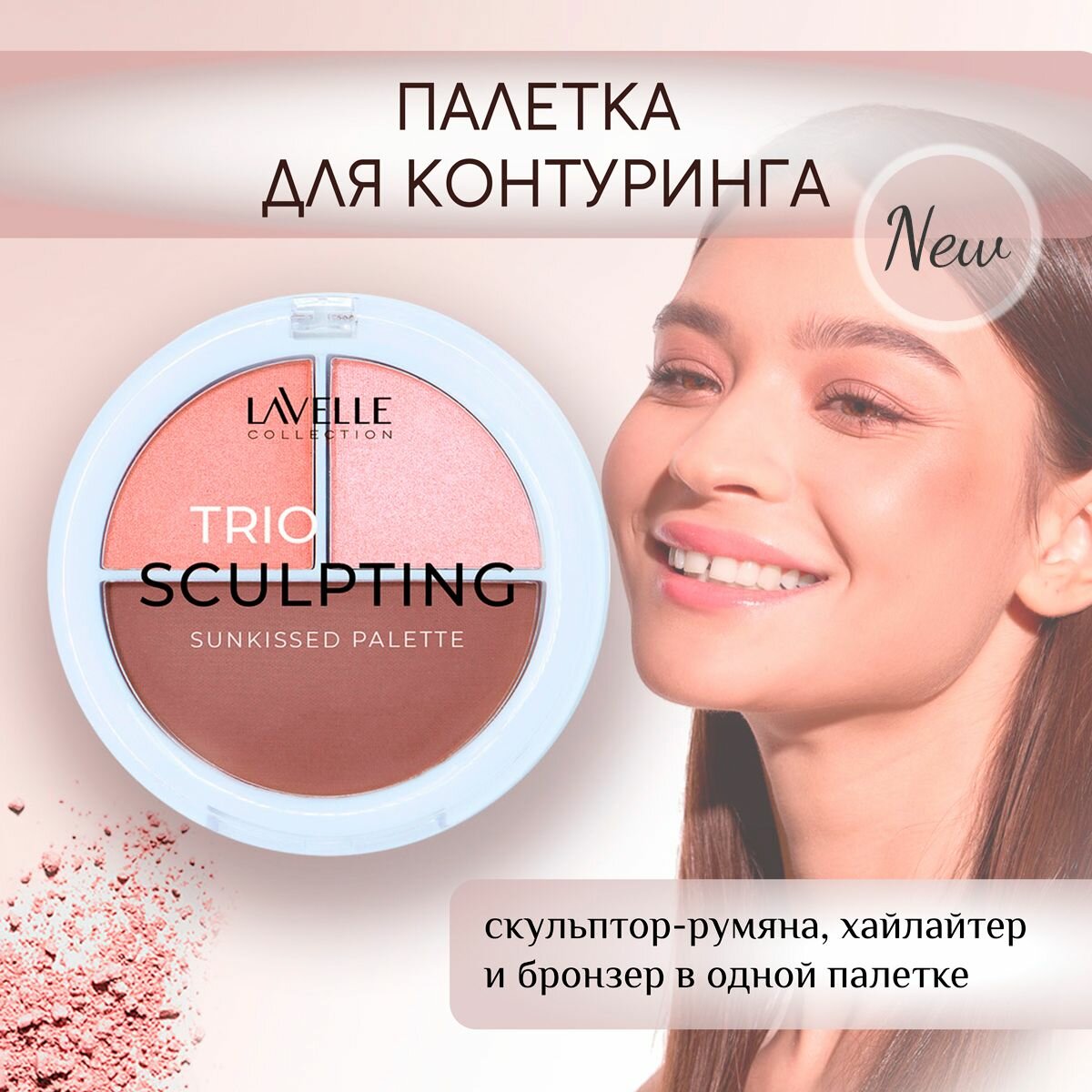 10 цен на LavelleCollection Палетка для контуринга румяна-скульптор, хайлайтер, бронзер SUNKISSED TRIO