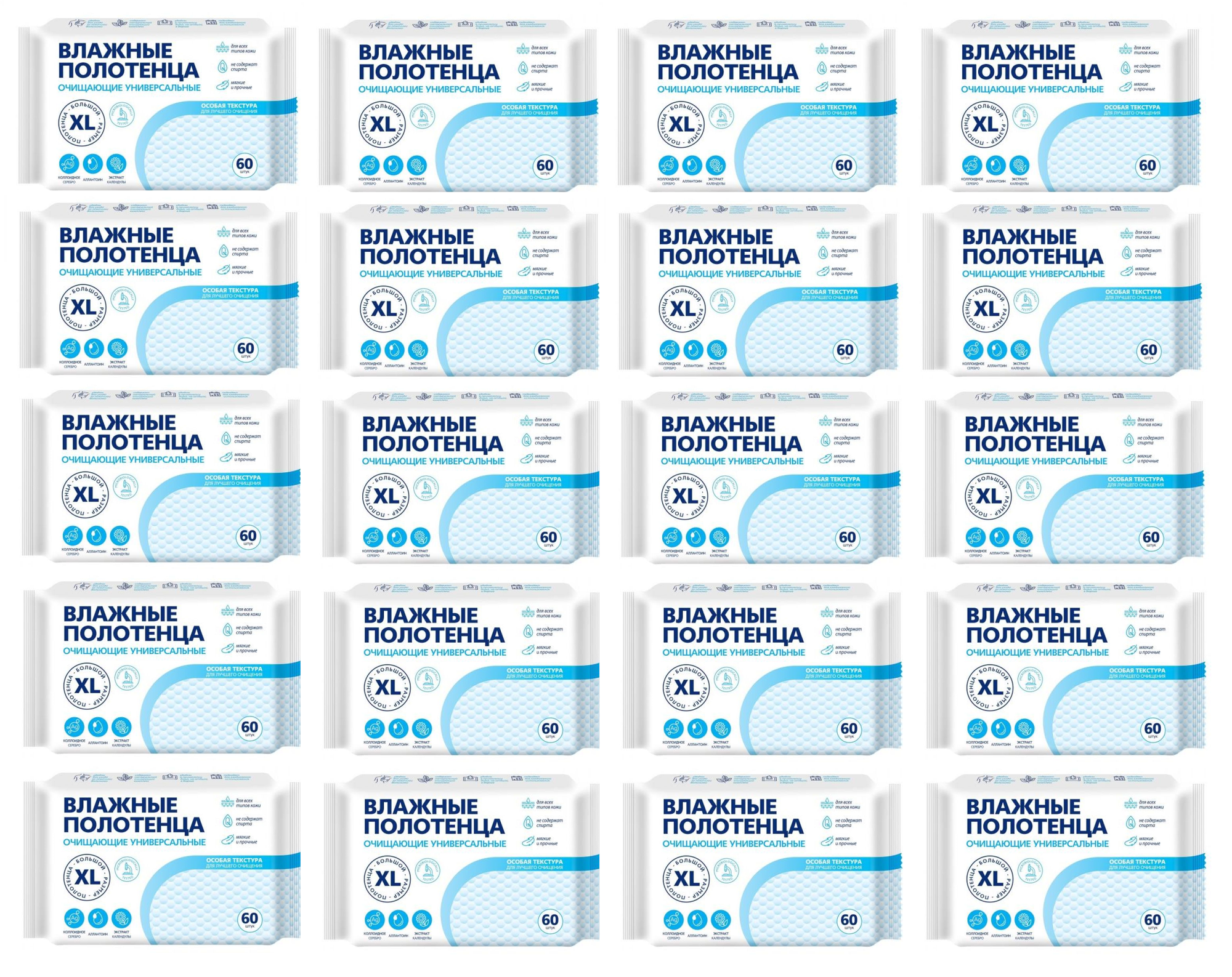 Влажные полотенца очищающие XL, универсальные, 60 шт, 6 уп 1 514 ₽