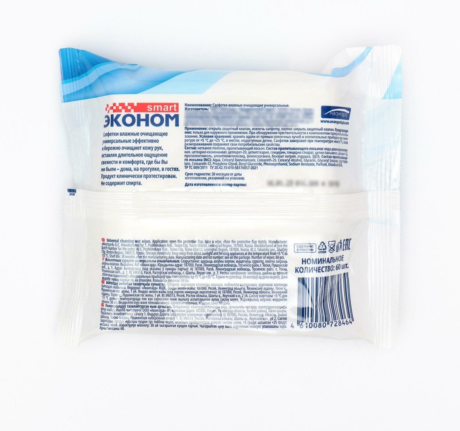 Эконом Smart Влажные салфетки Эконом Smart очищающие, универсальные, 60 шт. информация: