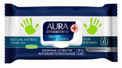 AURA влажные салфетки антибактериальные derma protect ромашка big pack с крышкой 72шт информация: