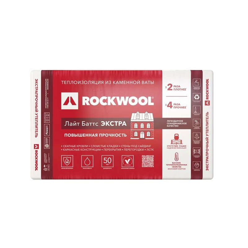 Утеплитель ROCKWOOL Лайт Баттс экстра 100х600х1000 мм 2.4 кв.м информация: