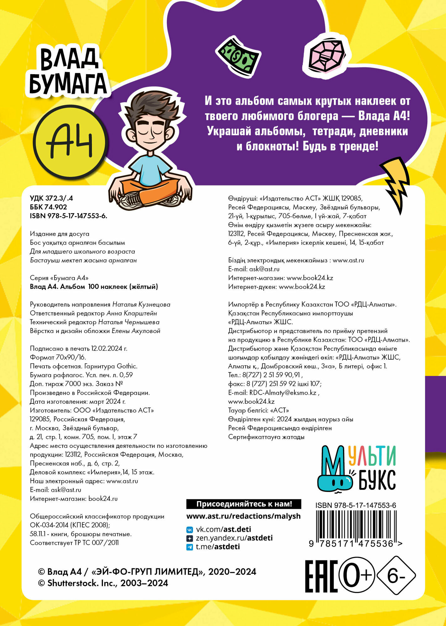 Влад А4. Альбом 100 наклеек (желтый) информация: