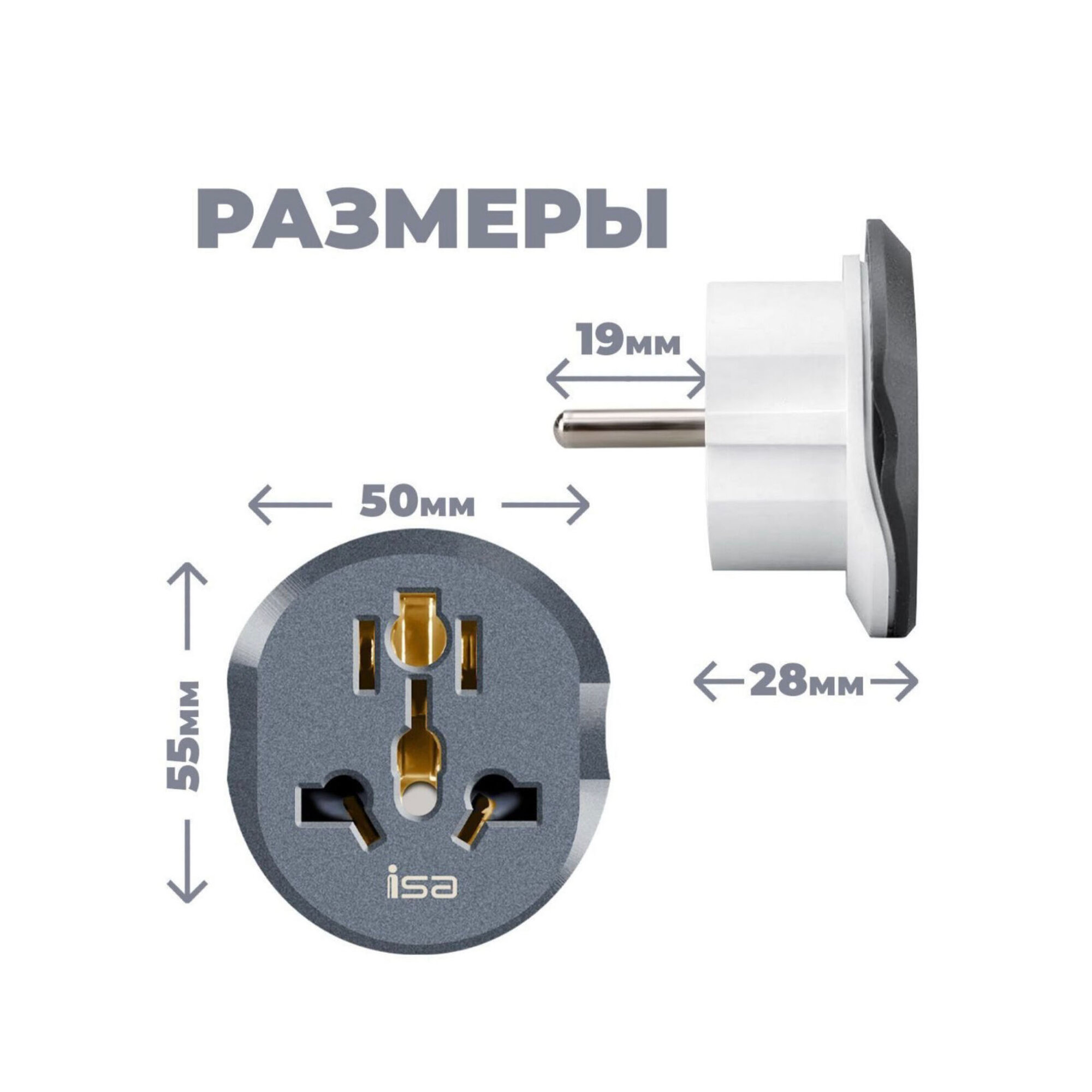 ISA переходник на все виды розеток (универсальный), серый 2 шт.