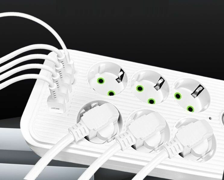 Отзывы на Сетевой фильтр 5 метров с 6 розетками 4 USB +1 Type-C 2500 Вт (удлинитель, адаптер для зарядки, пилот, тройник), с предохранителем и заземлением