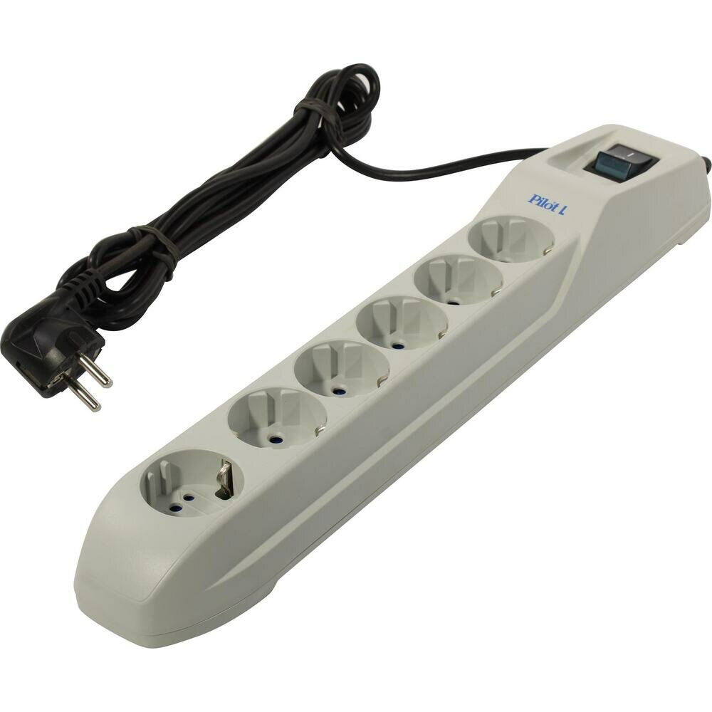 Сетевой фильтр Pilot L GP 1.8 метра 6 розеток (5 Евро+1 GP двойная розетка стандарта Gadget Parking) светло-серый (171)