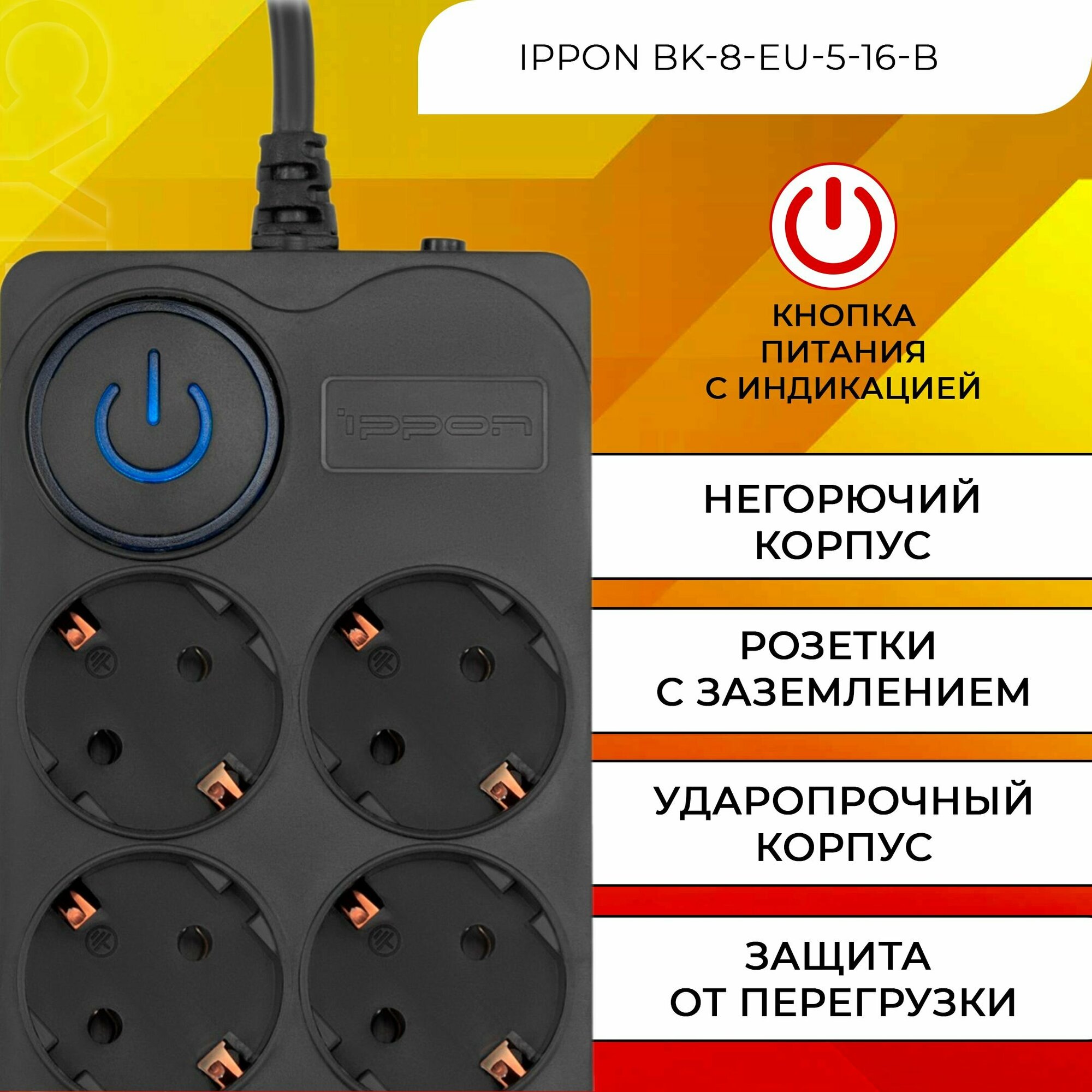 Отзывы на Сетевой фильтр Ippon BK-8-EU-5-16-B 5м (8 розеток) черный (коробка)