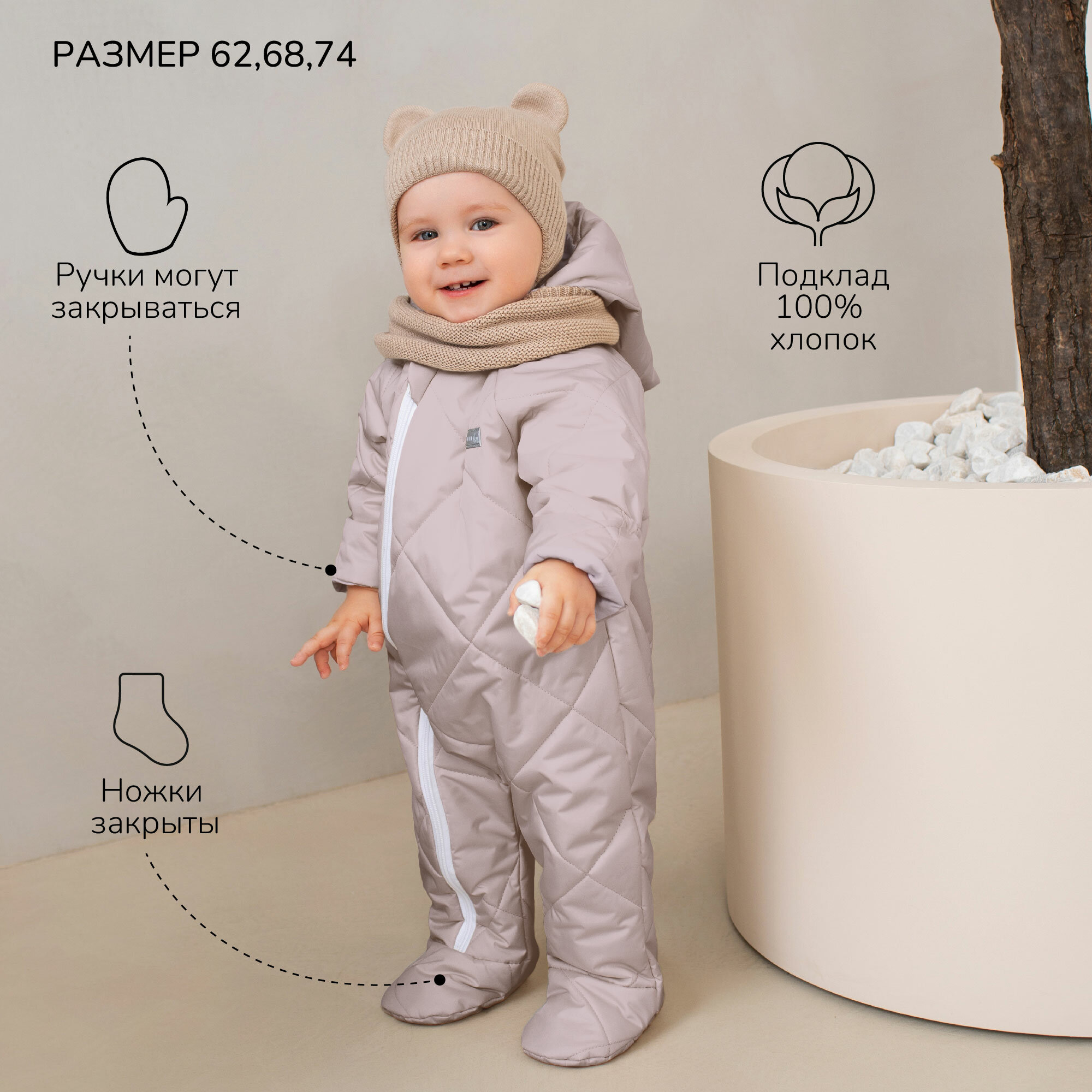 Комбинезон детский демисезонный стеганый с закрытыми ножками Amarobaby ELF, молочный, размер 62 4 624 ₽