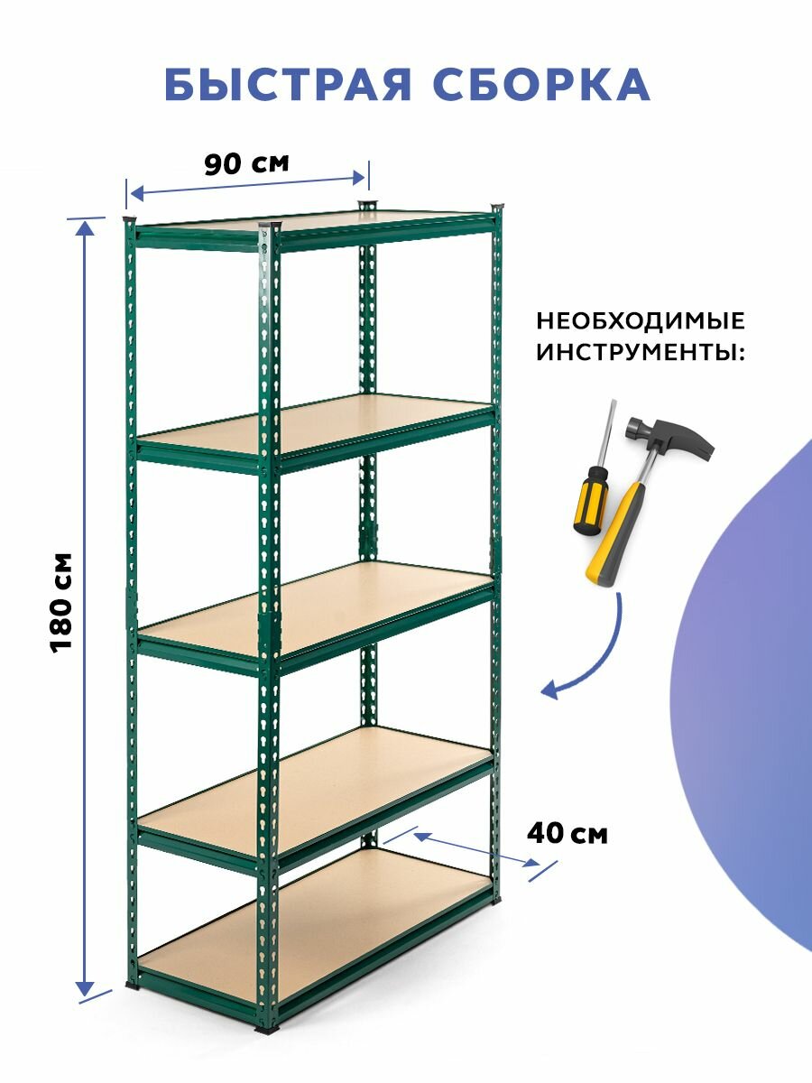 Стеллаж металлический безболтовой GASTRORAG GR-003-6, 5 полок МДФ, размеры 180х90х40 см, этажерка для кухни, мебель лофт, система хранения для дома, дачи и гаража информация: