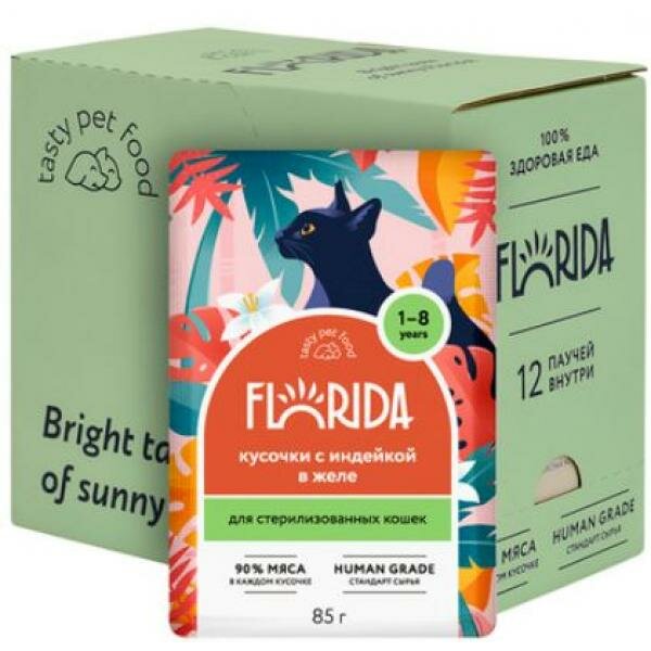 FLORIDA для взрослых кастрированных котов и стерилизованных кошек с индейкой в желе (85 гр х 12 шт) информация: