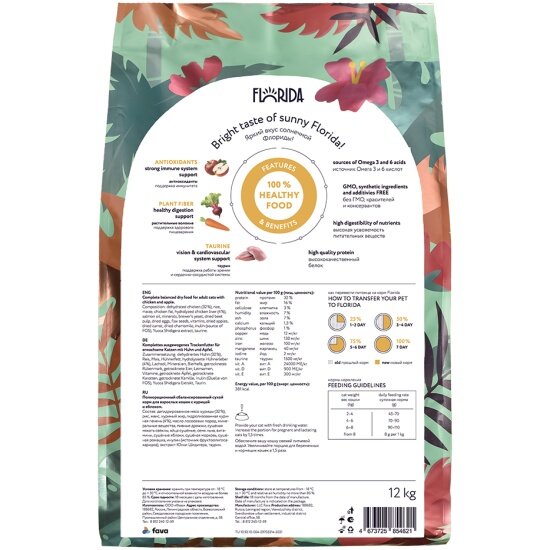 Сухой корм для кошек Florida курица, яблоко, 12 кг информация: