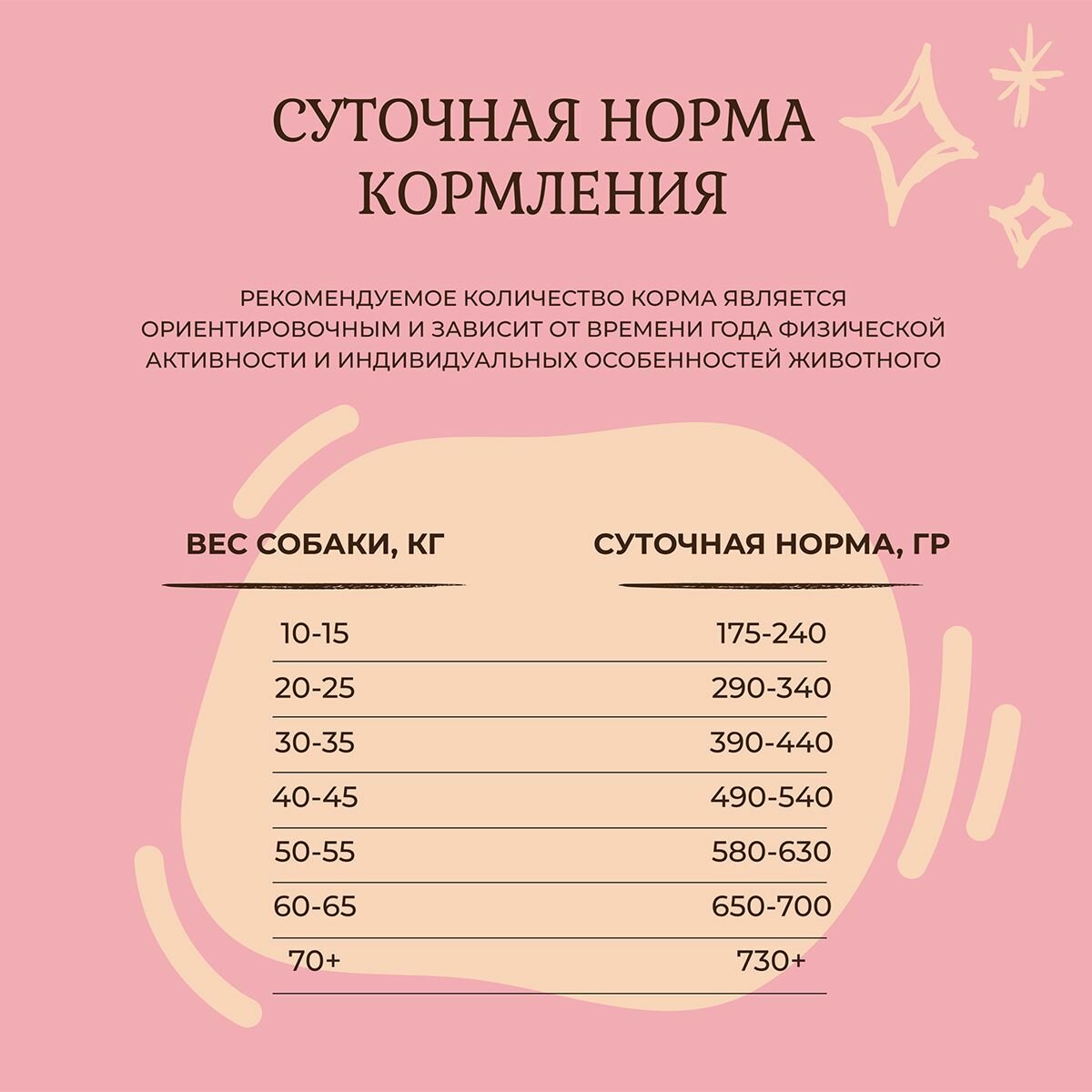 | Возраст животного | взрослые (1-6 лет) / пожилые (7+) / щенки (до 1 года) |