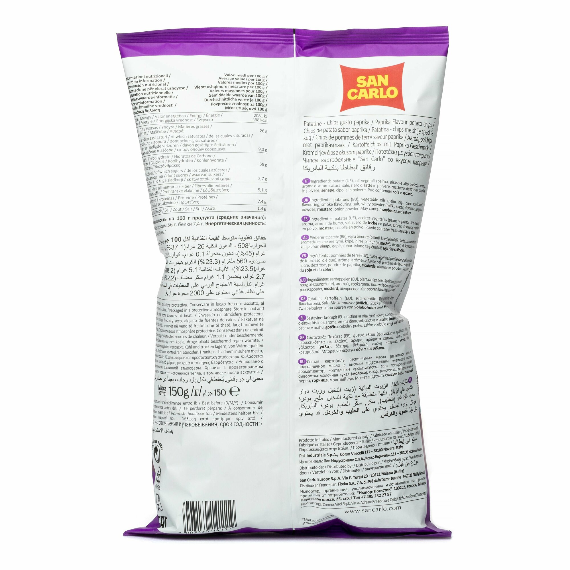 Чипсы картофельные San Carlo со вкусом паприки 150г информация: