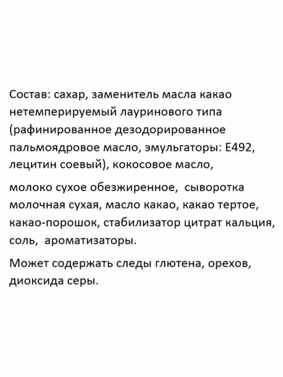 | Не содержит | ГМО / заменитель молочного жира / консерванты / пальмовое масло / сахар |