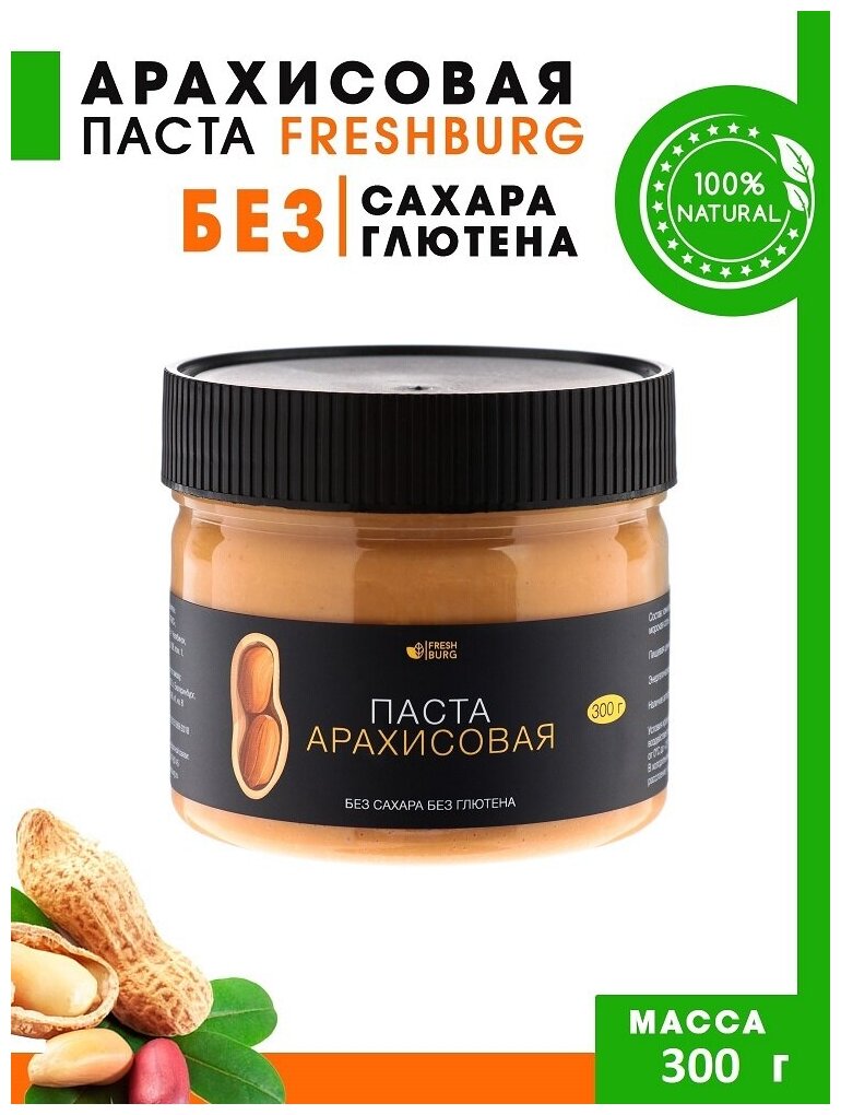 Паста арахисовая без сахара Freshburg (300 г) x 2 шт. информация: