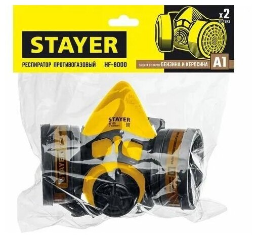 STAYER HF-6000 респиратор противогазовый, два фильтра A1 в комплекте, _z01 (11175_z01) информация: