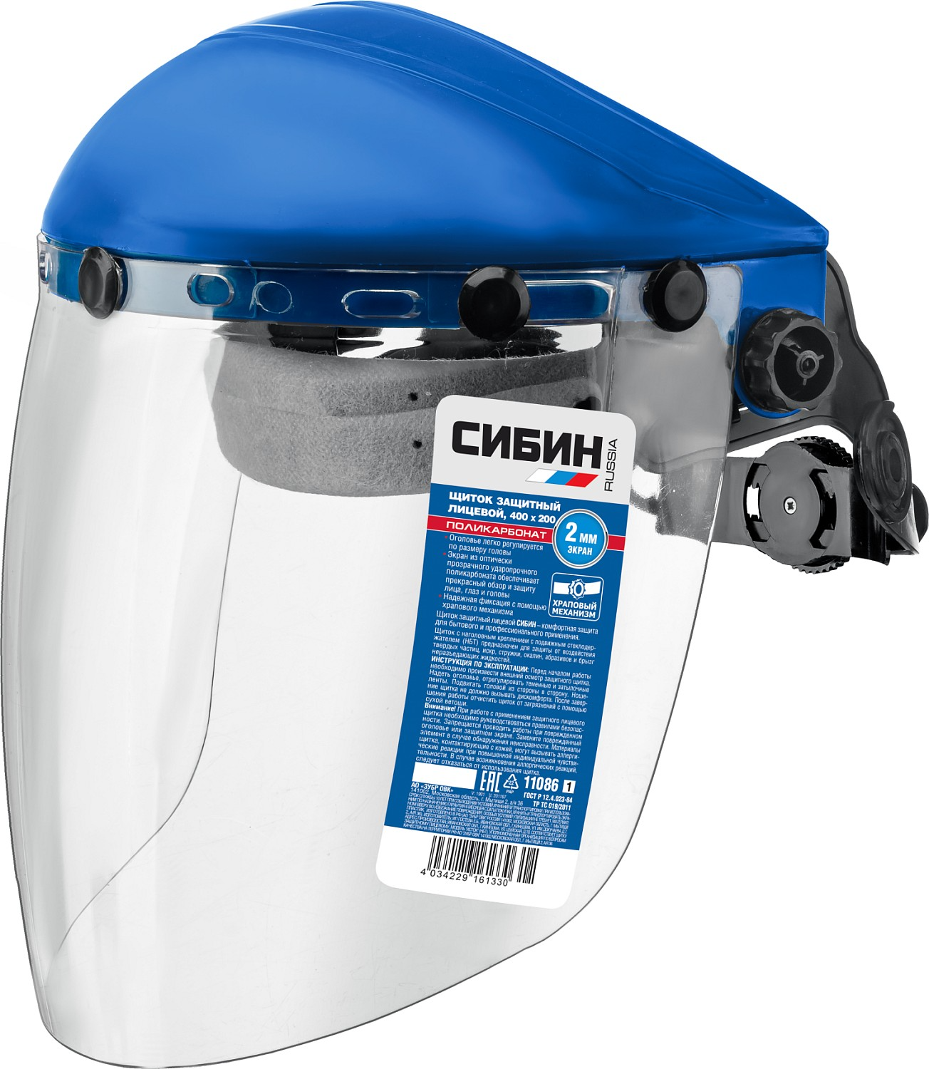 Щиток защитный лицевой с экраном из поликарбоната, храповый механизм СИБИН информация: