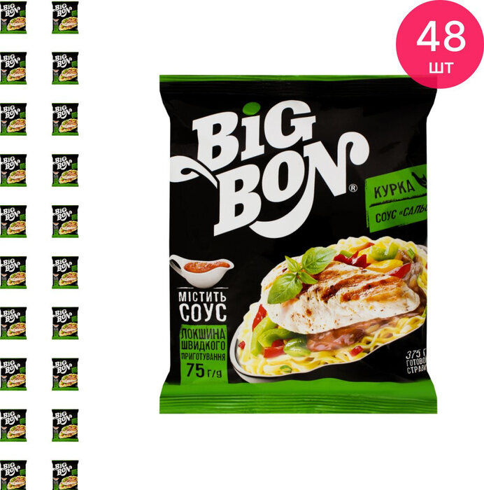 10 цен на Лапша BIGBON Курица + соус Сальса 75г. 48шт.
