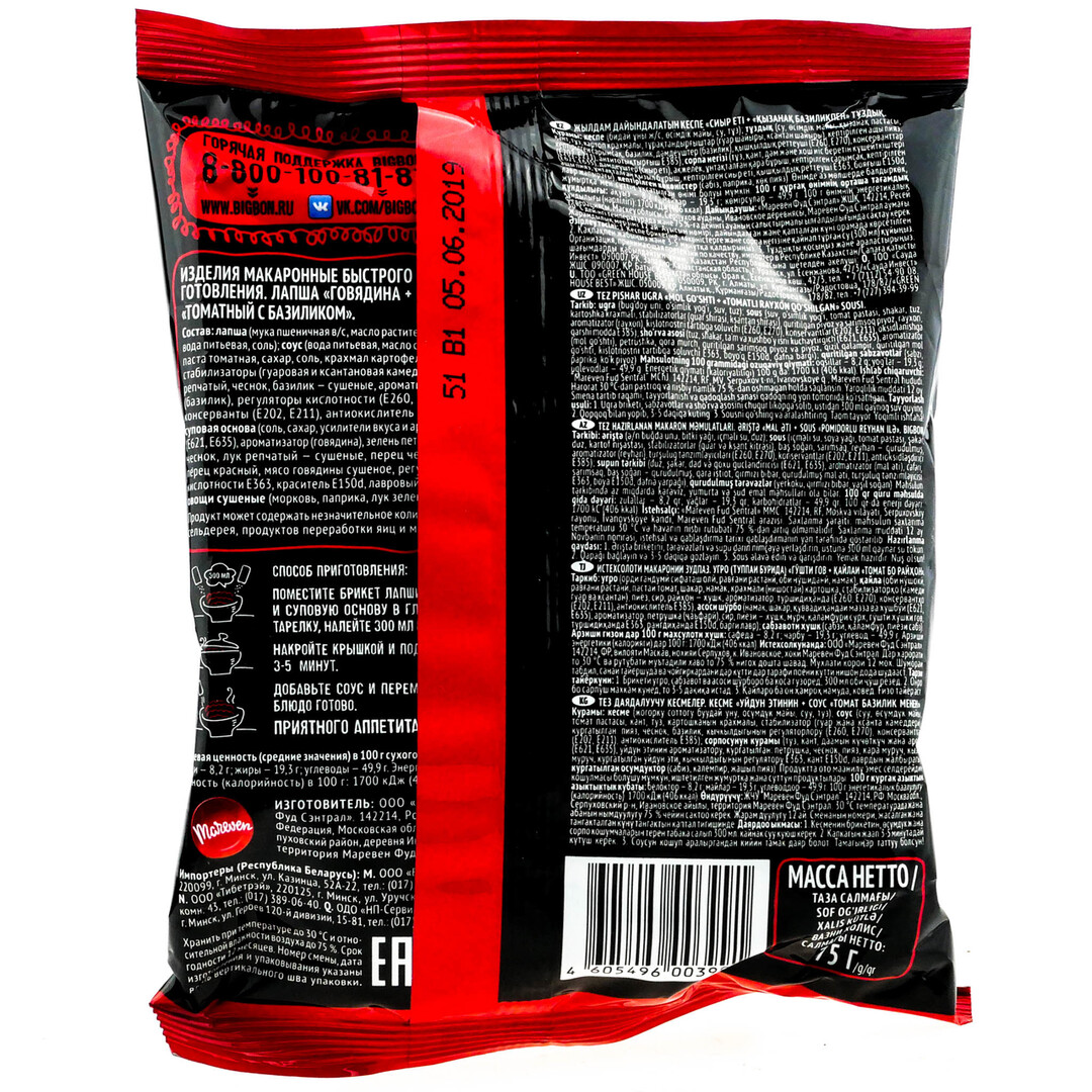 Упаковка 48 штук Лапша Big Bon говядина с соусом "Томат/базилик" пак 75г информация: