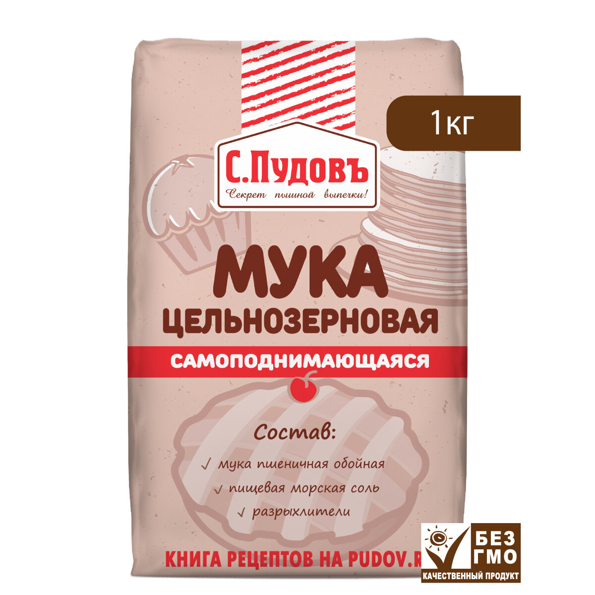 10 цен на Мука цельнозерновая самоподнимающаяся пшеничная хлебопекарная С. Пудовъ, 1 кг