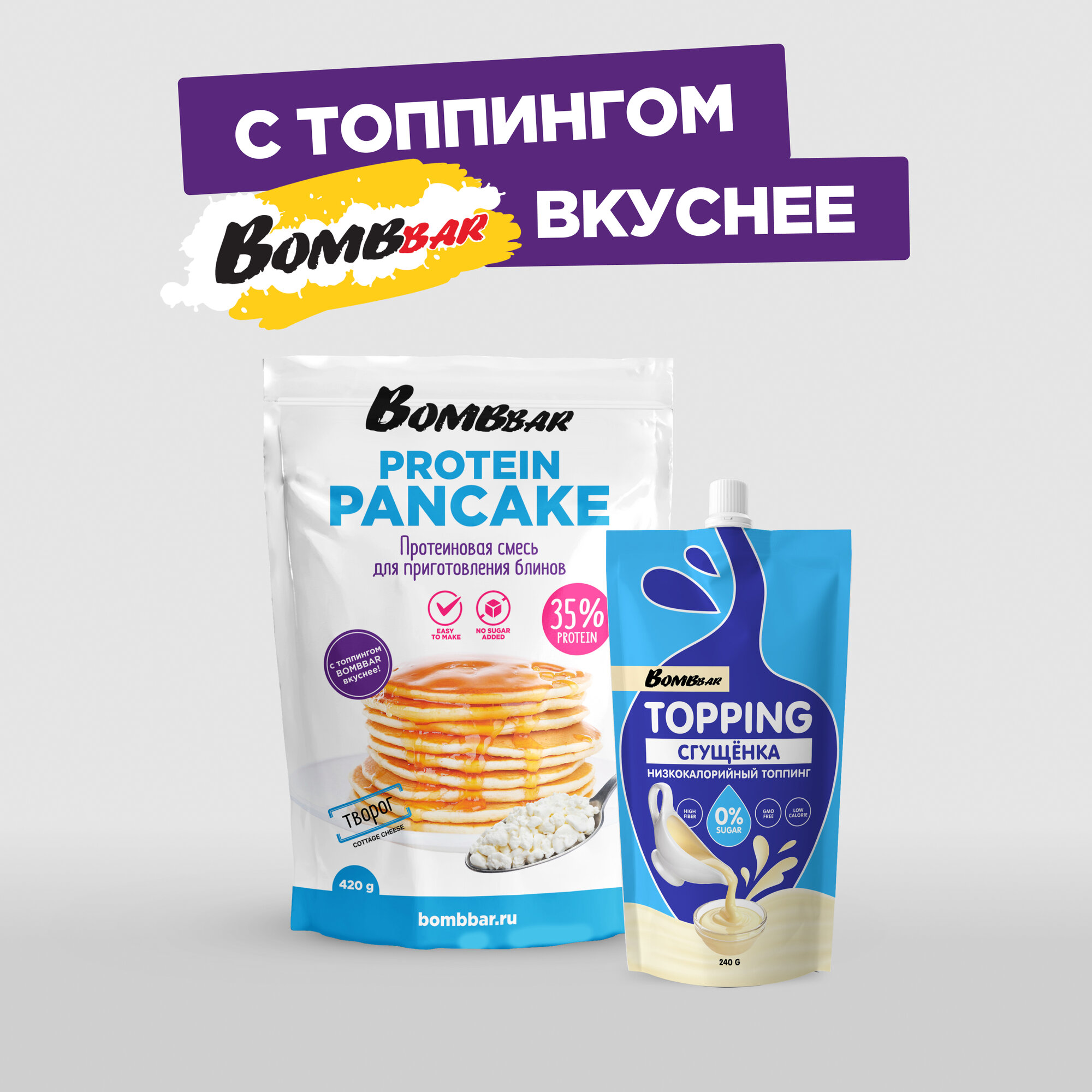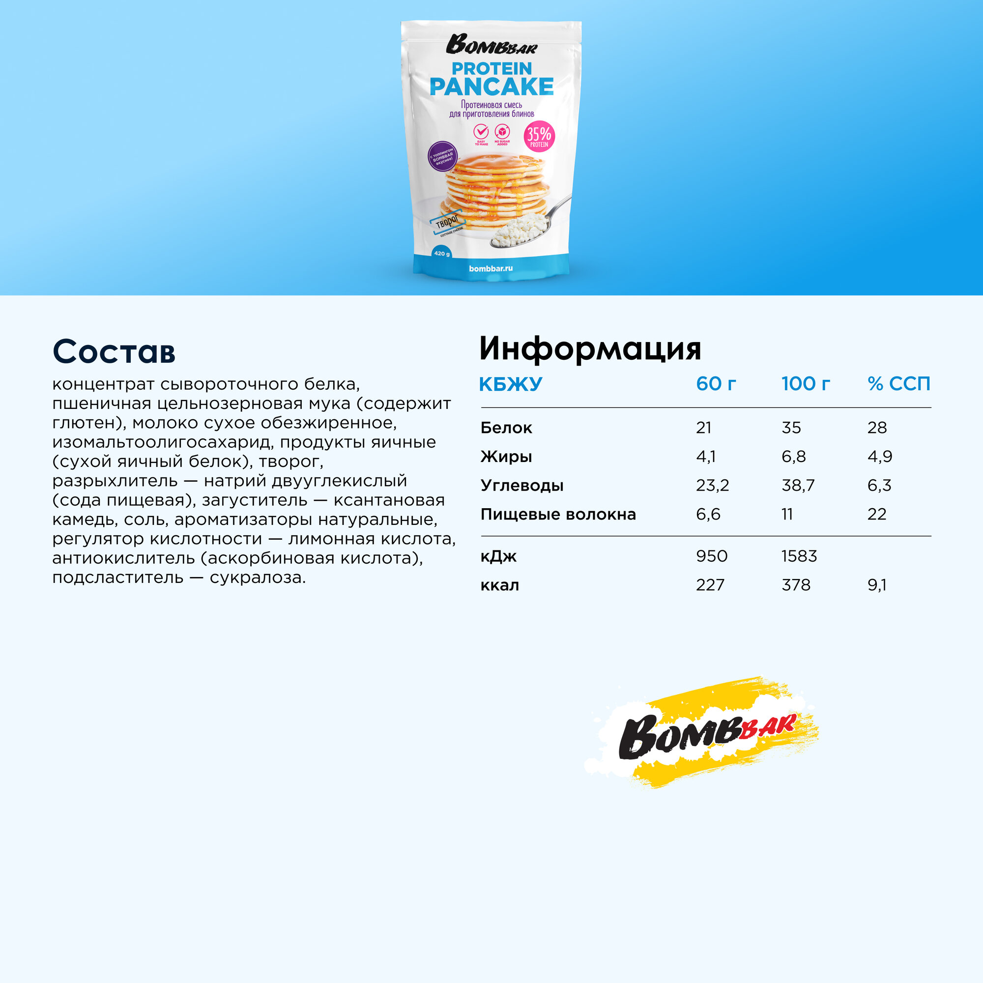 Bombbar Протеиновая смесь без сахара для выпечки панкейков и блинов "Творог", 420гр информация: