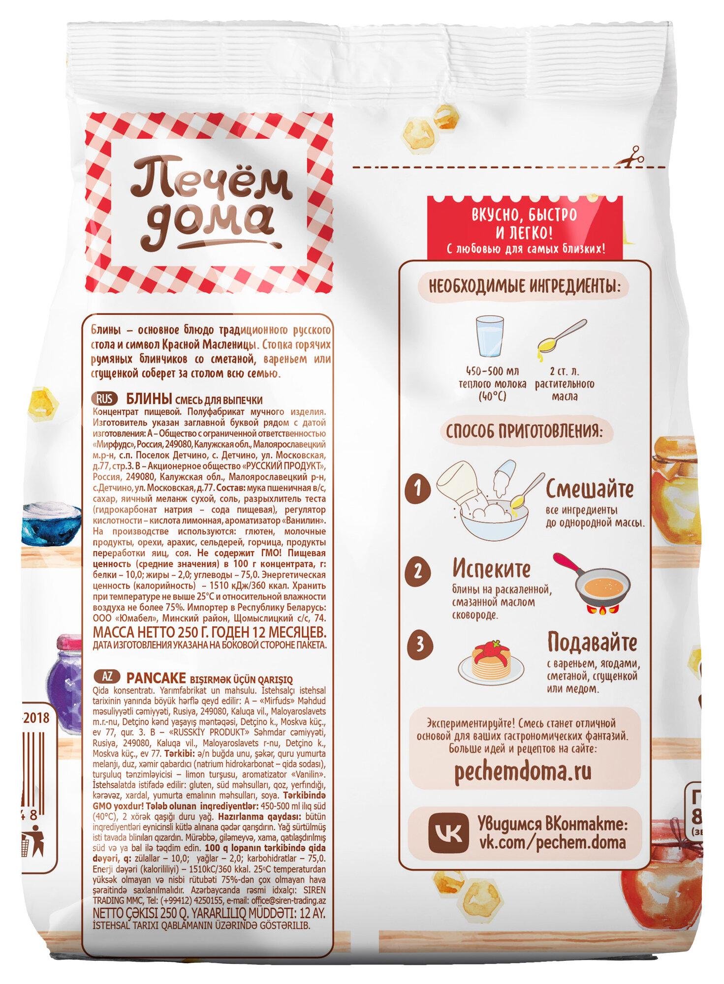 Смесь для выпечки «Печем Дома» Блины, 250 г информация: