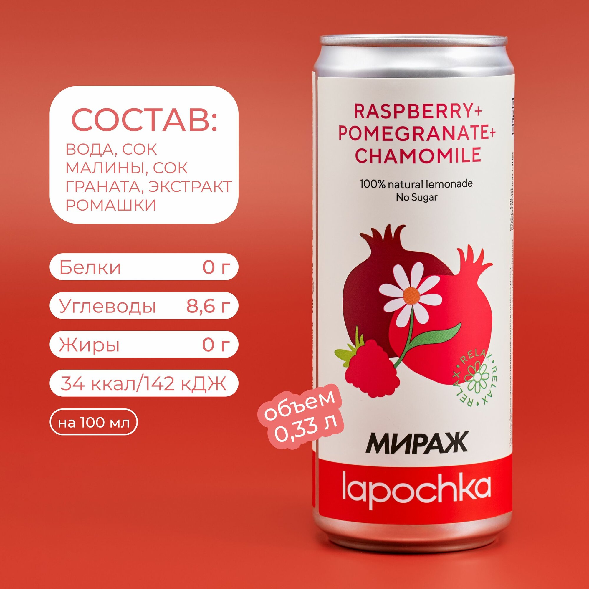 Натуральный лимонад без сахара LAPOCHKA x мираж Малина + Гранат + Ромашка 6 x 0,33 л информация: