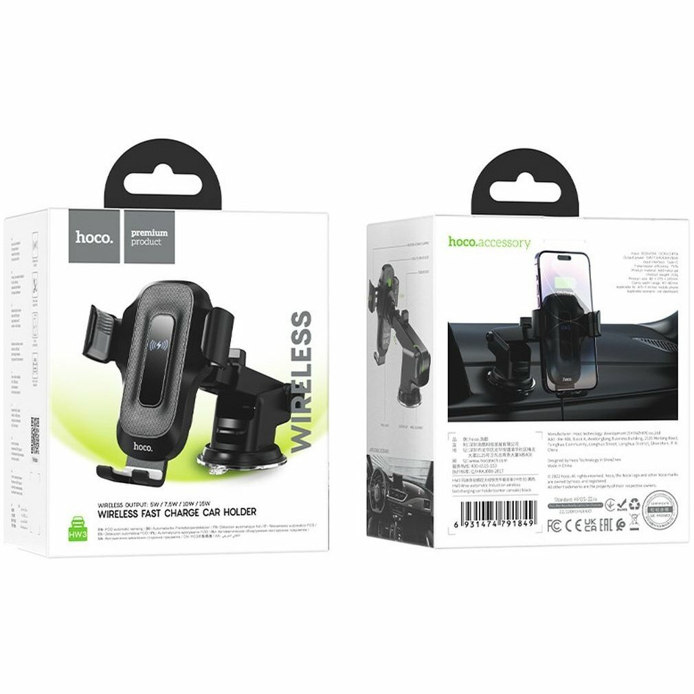 Автомобильный держатель Hoco Hw3, беспроводная зарядка, 15 Вт, для 4.5-7.0 дюймов, чёрный информация: