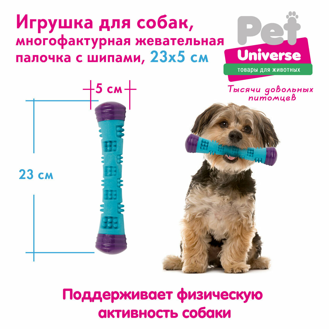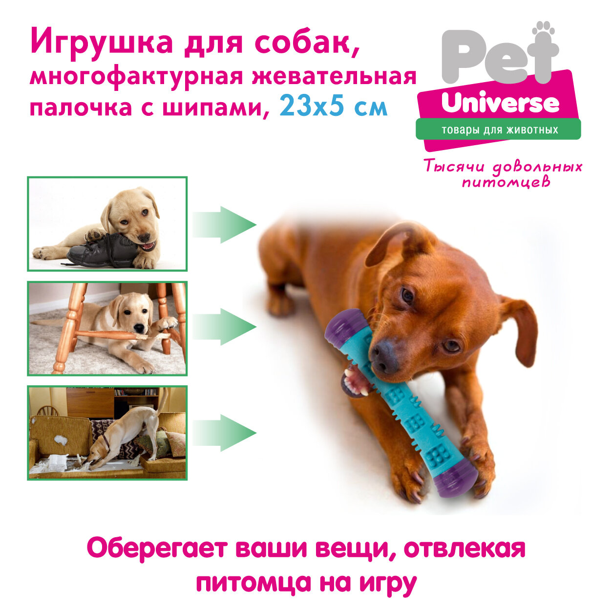 10 цен на Игрушка для собак Pet Universe Многофактурная жевательная палочка с шипами 23х5 см, 125 гр ТПР, PU3069