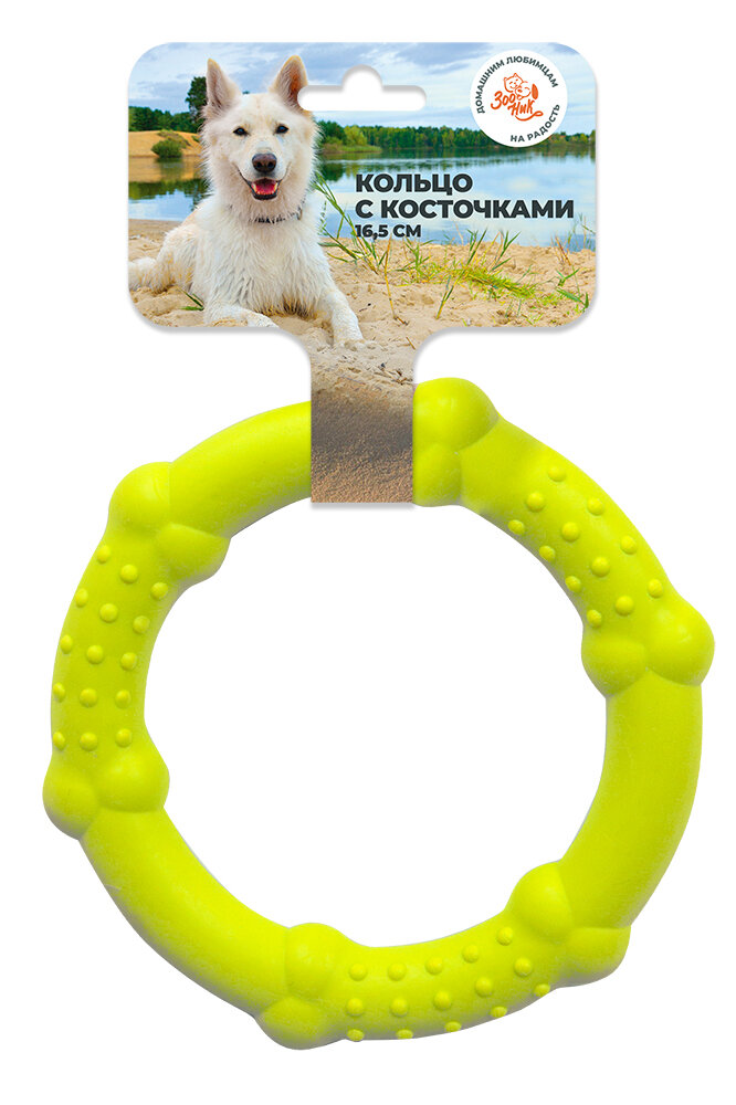 Игрушка для собак зооник Кольцо с косточками салатовое (16,5 см)
