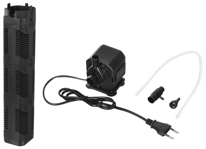 | Подробная комплектация | Корпус фильтра с насосом, губка, набор переходников для выходного отверстия, трубка забора воздуха, крепежи-присоски, инструкция. Картонная коробка. |