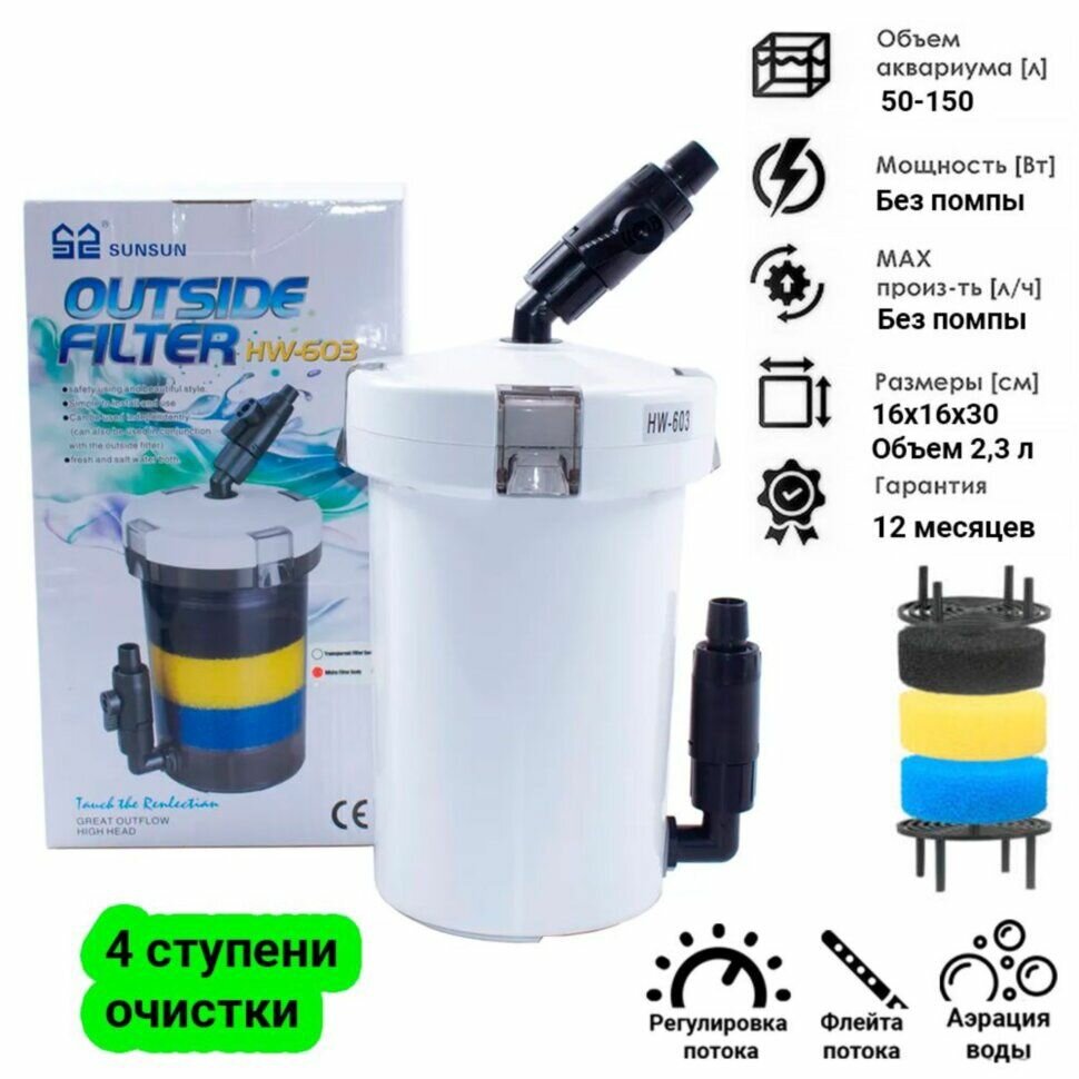 10 цен на Внешний аквариумный фильтр без помпы (с наполнителями, без шлангов) SunSun HW-603 (от 50 до 150 л.)
