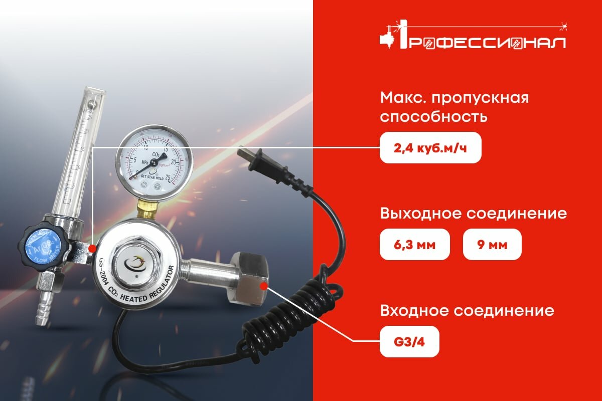 Редуктор СО2 с подогревом 36В Профессионал 07956 . информация: