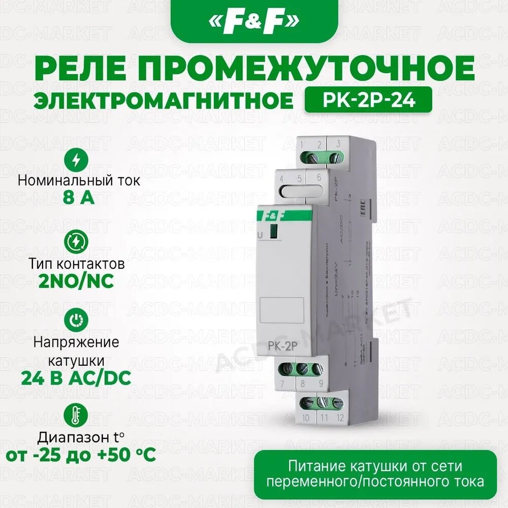 Промежуточное реле F&f PK-2P/Un24V, EA06.001.008 1 400 ₽