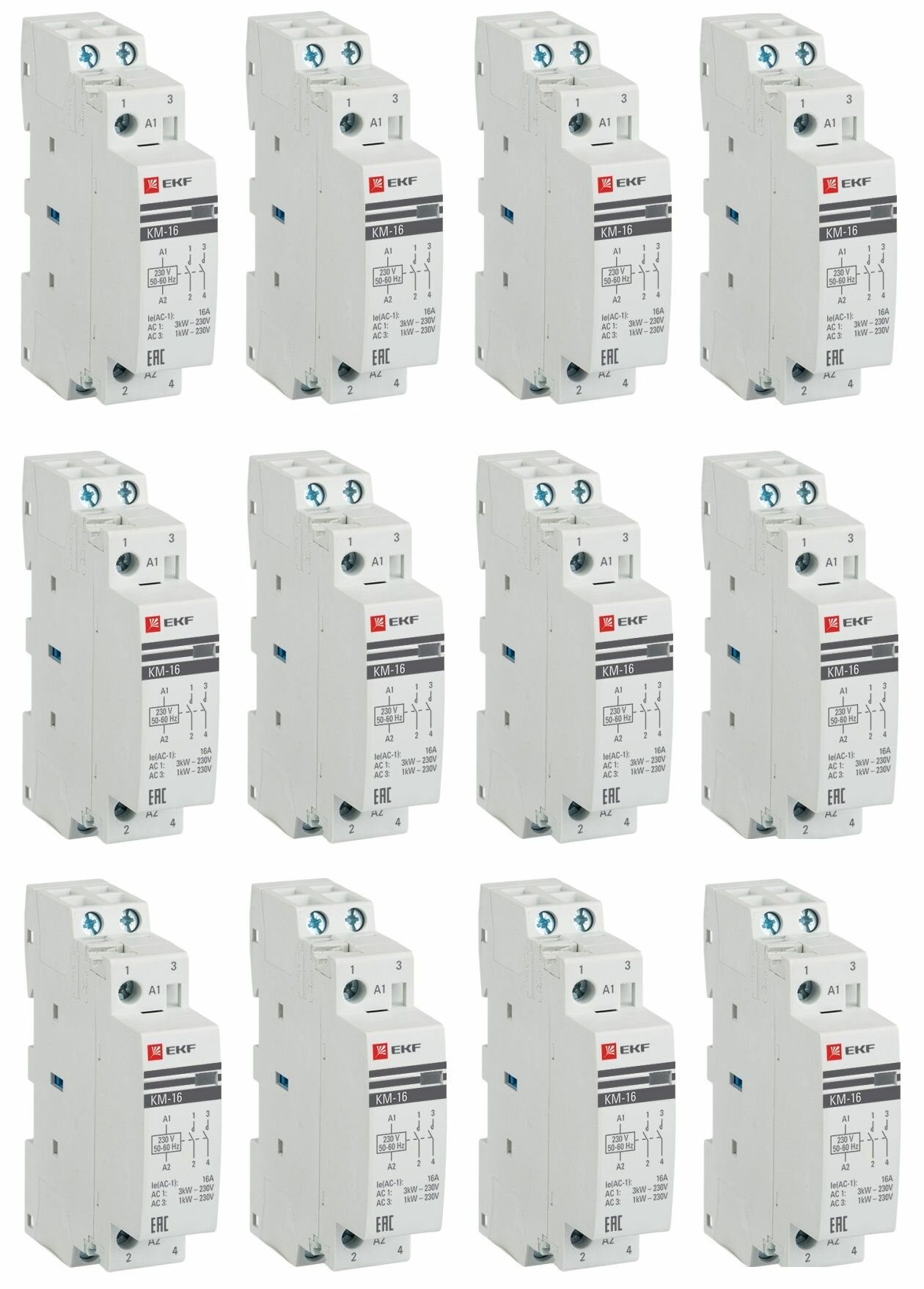 Контактор модульный КМ 16А 2NО (1 мод.) EKF PROxima 12 штук информация: