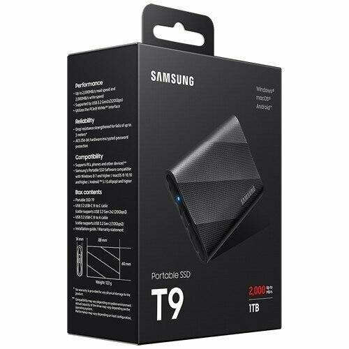 Внешний SSD диск SAMSUNG T9, 2TB, USB 3.2, Black (MU-PG2T0B/WW)
