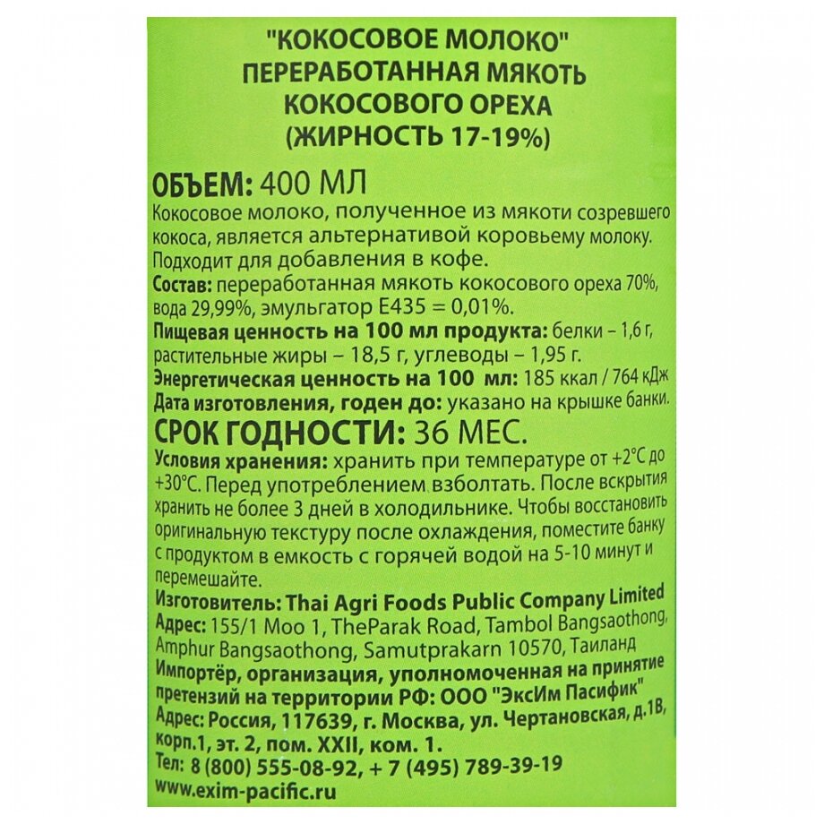 10 цен на Кокосовое молоко "AROY-D" 60%, 400 мл, ж/б (жирность-17-19%)