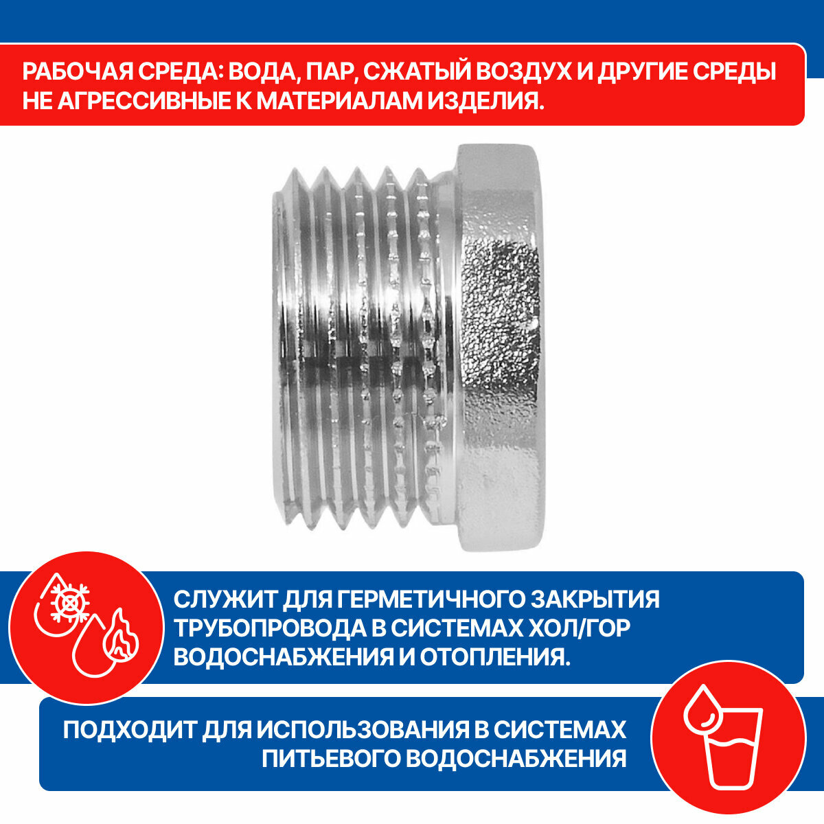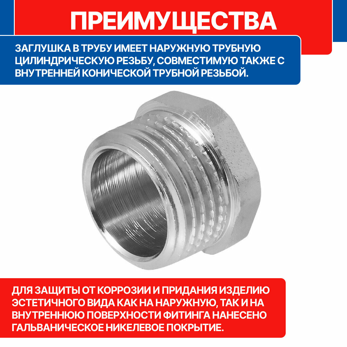 Заглушка в трубу (пробка) латунная никелированная 1/2" н MPF информация: