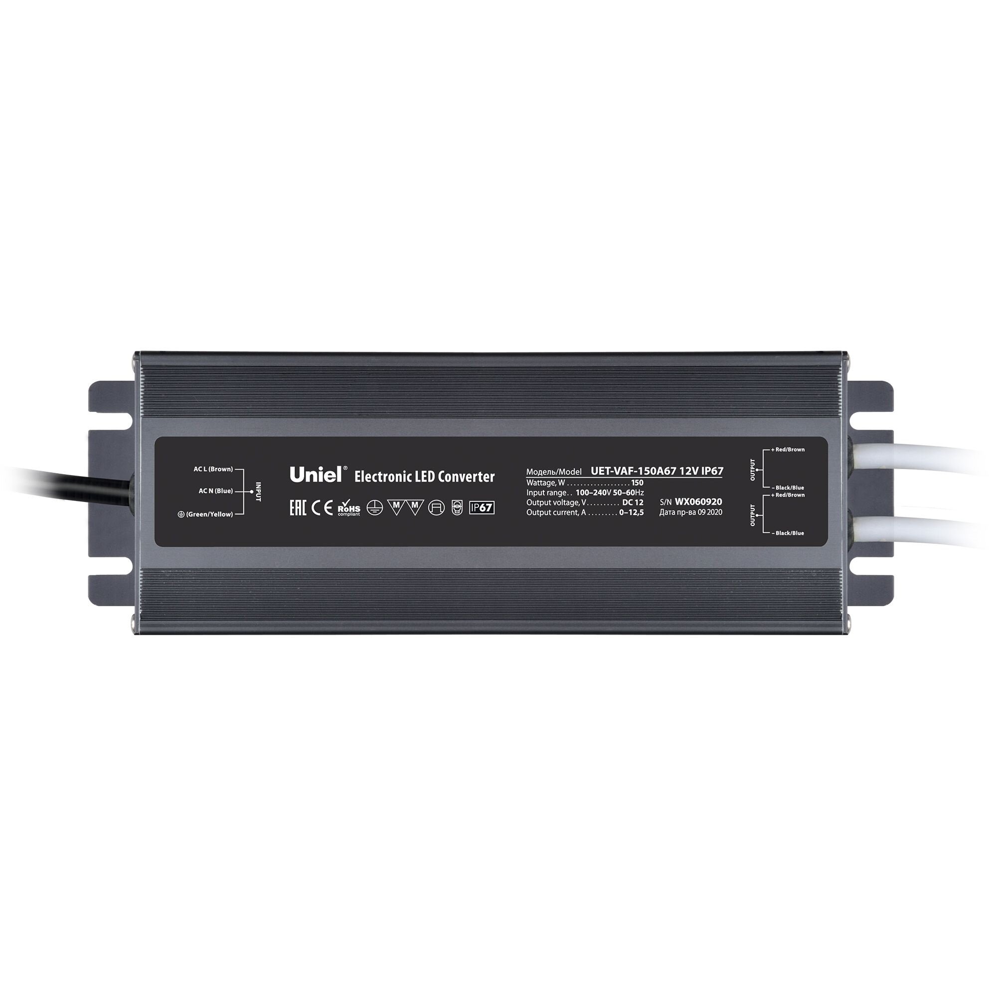 Отзывы на Блок питания Uniel UET-VAF-150A67 12V IP67 2 выхода ультратонкий. 150Вт. Металлический корпус. UL-00007577