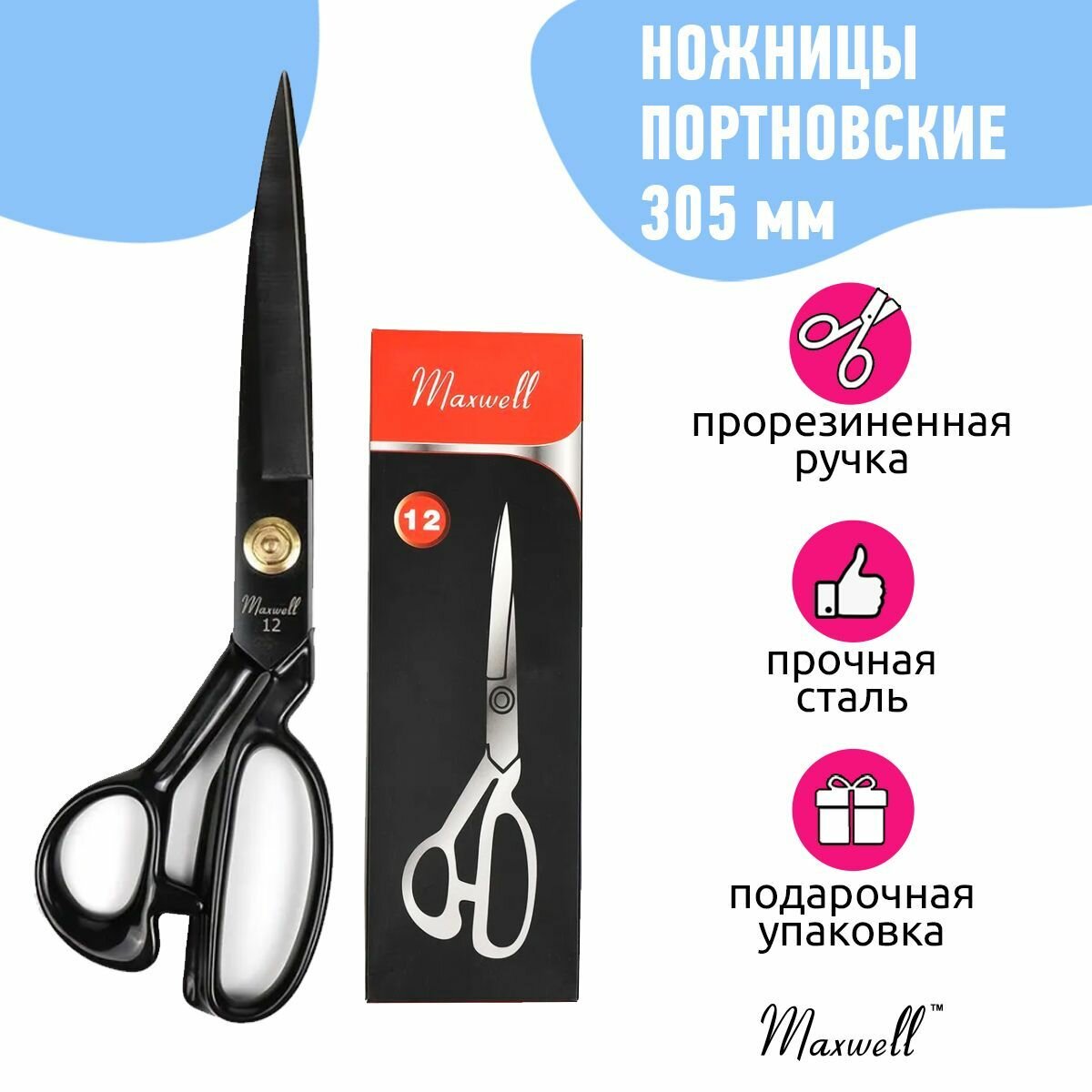 Отзывы на Ножницы портновские Maxwell premium, 12" 305*165, цельнометалл, силиконовая ручка