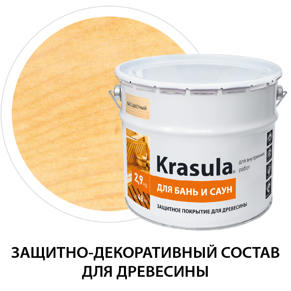 Krasula 2.9 л, Красула для бань и саун, защитно-декоративный состав пропитка для древесины информация: