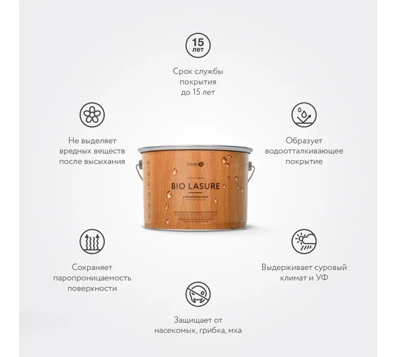 Elcon Водоотталкивающая пропитка для защиты дерева до 15 лет, антисептик для дерева,Bio Lasure орегон, 9 л 00-00461960