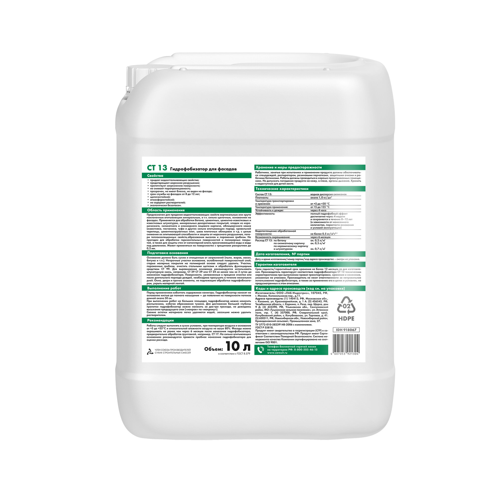 Гидрофобизатор CERESIT CT-13 10 литров. информация: