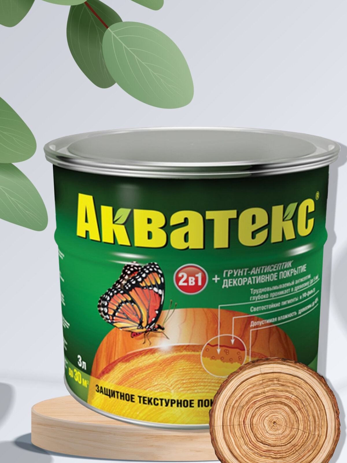 Акватекс" - декоративная пропитка и грунтовка объемом 2.7 литра, цвет "Рябина 1 950 ₽